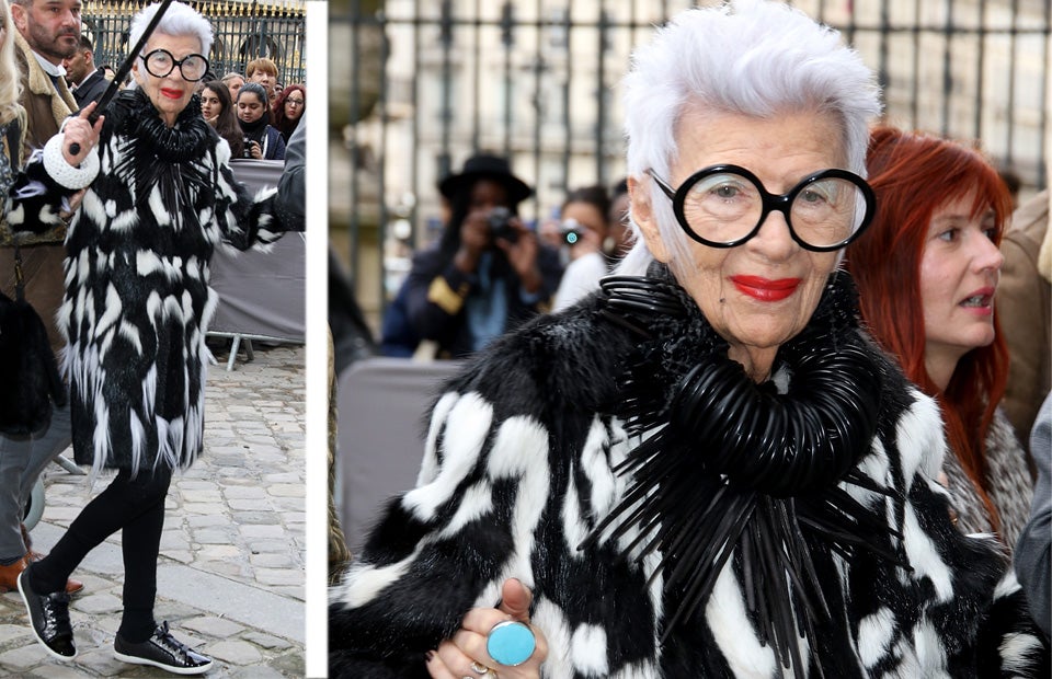 Mit ihren extravaganten Outfits und den riesigen runden Brillen stahl die 94-jährige begeisterte Kleidersammlerin, die sich selbstironisch als "greises Starlet" bezeichnet, bei der Pariser Modewoche wieder allen die Schau. "Jemand hat mir einmal gesagt: 'Du bist nicht schön und du wirst es nie sein. Aber das macht nichts. Du hast etwas anderes - Stil'", erzählt Apfel gerne.