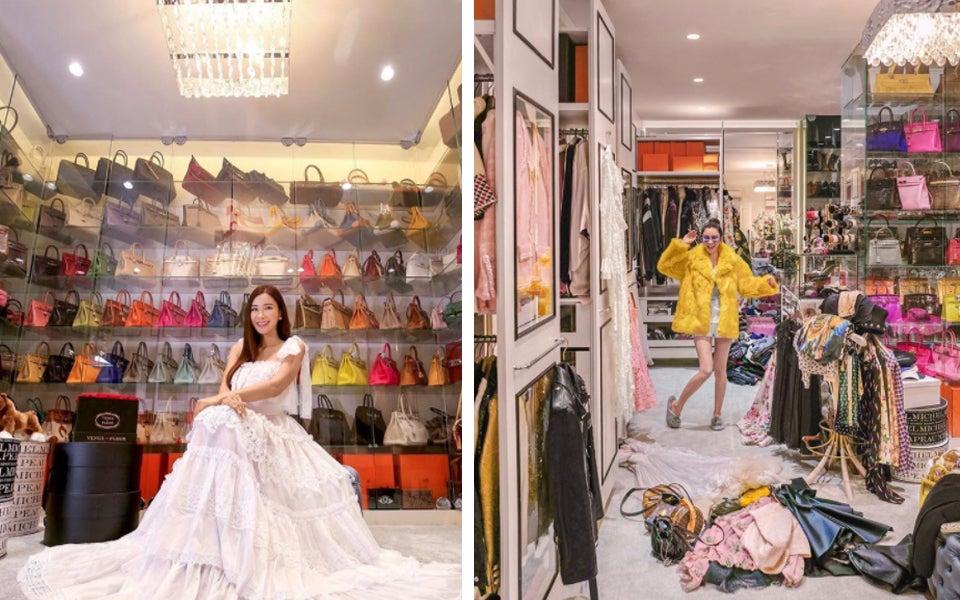 Die Bloggerin hat Fotografen und Kameramännern Einblick in ihre Garderobe gewährt. Zugang zu ihrem Modereich - sie nennt es "Spielplatz" - gibt es nur über Fingerabdruck-Eingabe, denn der begehbare Schrank beherbergt Mode im Wert von Millionen Euro. Sie hat über 300 Paar Designerschuhe und 200 Taschen von Hermès, welche in der günstigsten Ausführung etwa 7000 Euro kosten.
