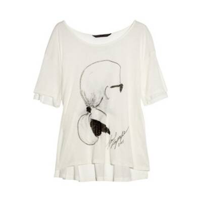 Karl heißt sie, simpel und reduziert wie seine Designs. Die Farben sind in Schwarz und Weiß gehalten, ergänzt mit dramatischem Silber und Materialmix . So findet man auch Pailletten und PVC. Glanzbeschichtungen geben den Teilen eine besondere Note und machen sie partytauglich. Mit hohem Maß an Selbstdarstellung findet man Jutetaschen und T-Shirts mit Karl Lagerfeld Zeichnungen. Sein Konterfei darf halt nicht fehlen. Alles in Allem eine sehr tragbare Kollektion die verschiedene Generationen anspricht, das Preissegment ist in der Mittelklasse angesiedelt.
