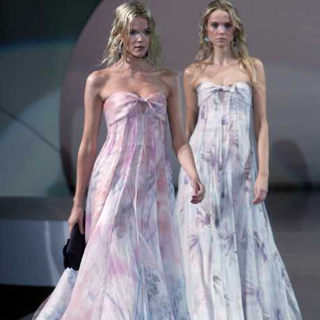 Zum federführenden Designer dieser Tendenz avancierte Giorgio Armani. Seine Modelle aus Organza oder Chiffon tanzten vor den Augen der Stargäste wie Hollywood-Schauspielerin Cate Blanchett oder Charlene Wittstock, Freundin von Fürst Albert von Monaco, im Schritttakt durch den Saal. Armani entdeckt im nächsten Sommer den Romantiker in sich. Mit zarten Pastellfarben, Bermudas mit Schleife und vielen, oft in Schichten gelegten Kleidern und Röcken aus hauchdünnen Materialien.