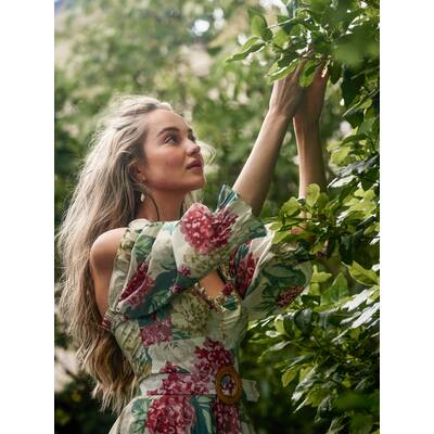Die neue Kollektion von Lena Hoschek macht richtig Lust auf Sonne. Denn in romantischer Opulenz beflügelt Lena Hoscheks neue Spring/Summer 23 Kollektion, die den Namen „Cottagecore“ trägt, alle Sinne. Üppige Flowerprints treffen auf zarte Naturmaterialien und entführen in eine Welt, in der die Sehnsucht nach Ursprünglichkeit den Weg zur Besinnung zurück zur Natur ebnet.