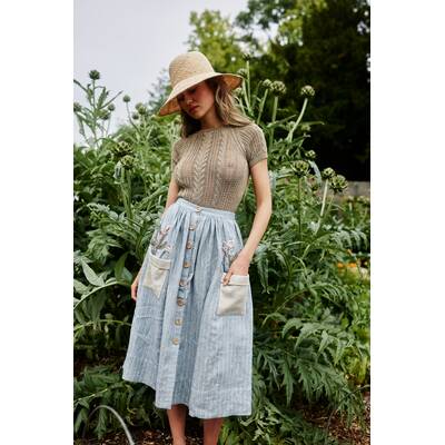 Unter den Cottagecore-Designs finden sich karierte Kleider, unzählige florale Kleider und Röcke, aufwändig gearbeitete Ruffle- und Spitzendetails und die Verwendung von Naturmaterialien, die das Bewusstsein für natürliche Ressourcen ins Gedächtnis rufen. Alle Kleidungsstücke sind mit viel Achtsamkeit designt und natürlich mit größter Sorgfalt verarbeitet, um ihre Trägerin für viele Saisonen zu erfreuen.