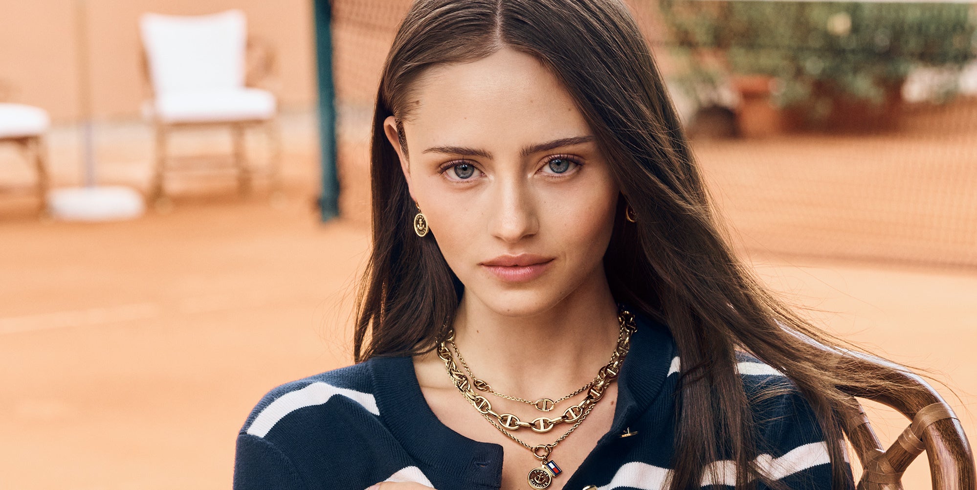 Für alle, die sich beim Kombinieren unsicher sind, bietet Tommy Hilfiger in dieser Saison vor-geschichtete Designs an. Diese Schmuckstücke bestehen aus mehreren Elementen, die bereits fest miteinander verbunden sind. So lässt sich der Look eines kuratierten Stacks mit nur einem Handgriff erzielen. Die Kollektion ist ab sofort für Fashion-Fans erhältlich.