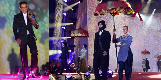 Lanvin machte den Anfang und war heuer erstmals am Life Ball zu sehen. Ein Priester, der eine schwarze Messe abhielt, wurde von Ben Becker gespielt. Mit goldenen Masken und ganz in schwarz verhüllt zeigten sich die Models am Catwalk. Die sehr düstere Show war von Smokings gekennzeichnet.
