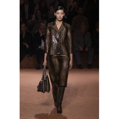 Fendi steht für Luxus, Handwerkskunst und starke Weiblichkeit – und genau das zeigte sich in jedem Look der neuen Kollektion. Silvia Venturini zeigte eindrucksvoll, dass sie das Erbe des Hauses versteht, denn ihre Designs sind eine Hommage an skulpturale Silhouetten und fließende Formen, die Weiblichkeit neu interpretieren.