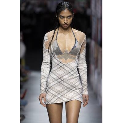 Die Show von Alberta Ferretti sorgte ebenfalls für einen großen Promiauflauf. Model Ashley Graham schlug dieses Mal einen ruhigeren, eleganteren Ton an: Sie trug einen schwarzen Leder-Trenchcoat als Kleid und dazu ein Paar zierliche Stilettos. Neben Graham begeistern auch Jameela Jamil und Eva Herzigová in der ersten Reihe.