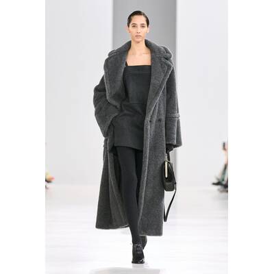 Dass graue Monochrom-Looks keineswegs eintönig aussehen, bewies Max Mara bei der Herbst/Winter-Show in Mailand. Laut dem Modehaus tragen wir Grau in diesem Herbst am liebsten von Kopf bis Fuß. Neben den klassischen Max Mara Mänteln dominierten Mikro-Shorts mit hoher Taille sowie Stickkleider auf dem Laufsteg.