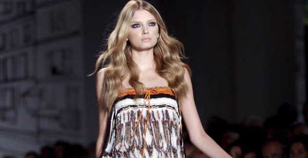 Passend zum Hippie-Look trugen die ModelsStirnfransen, offene Haare und auffälligen Schmuck. Wegen des Jubiläumswurde die Kollektion ausnahmsweise in Rom gezeigt und nicht in New York.