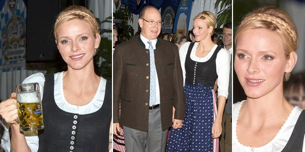 Bier statt Champagner: Fürst Albert von Monaco und seine Charlene ließen sich die Eröffnung des 7. Oktoberfests in Monte Carlo nicht entgehen. In Dirndl und Trachtenanzug sagten sie "Prost", als es im berühmten Café de Paris endlich hieß: "Ozapft is!"