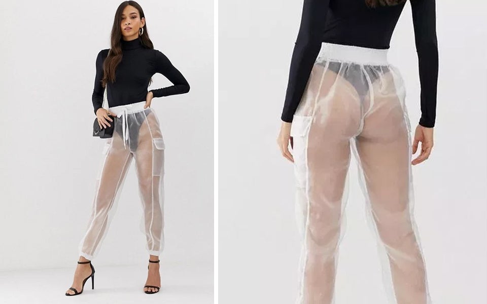Auf Twitter wurden User auf eine durchsichtige Hose aufmerksam, die das Drunter vollkommen offenbart. "Was ist der Sinn einer solchen Hose?", fragt man sich online. Der Satire-Account Asbos_SOS auf Instagram widmet sich den größten Mode-Fails von Asos und fasst die Unsinnigkeit der "Nackt-Hose" mit folgenden Worten: "Wenn man morgens Kniebeugen gemacht hat und es die ganze Welt wissen lassen will."