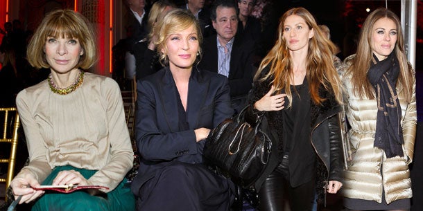 Ob Schauspielberühmtheiten wie Uma Thurman und Kate Winslet oder ehemalige Models, die dann ins Schauspiel gingen wie Liz Hurley - alle waren sie da. Anna Wintour ist fast auf jeder Show sichtbar, gehört es doch zu ihrem Job den Designern mit ihrer Anwesenheit das Fürchten zu lehren.
