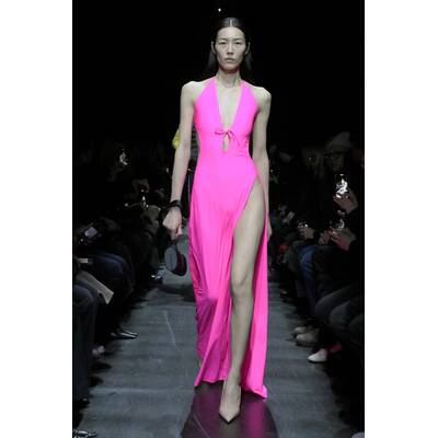 Und als wäre das nicht schon heiß genug, lieferten die Stars in der Front Row die passenden Kontraste. Alessandra Ambrosio kam im extravaganten Dessous-Look: schwarze Strapsen kombiniert mit einem Oversize-Pullover. Barbara Palvin setzte auf einen transparenten Spitzen-Bodysuit. Und Vittoria Ceretti, Leonardo DiCaprios große Liebe, entschied sich für einen komplett durchsichtigen Spitzen-Jumpsuit. Etwas züchtiger zeigte sich Schauspielerin Jessica Alba: Sie hüllte sich in einen Oversize-Mantel in Schwarz.