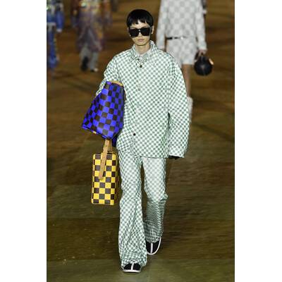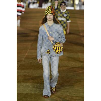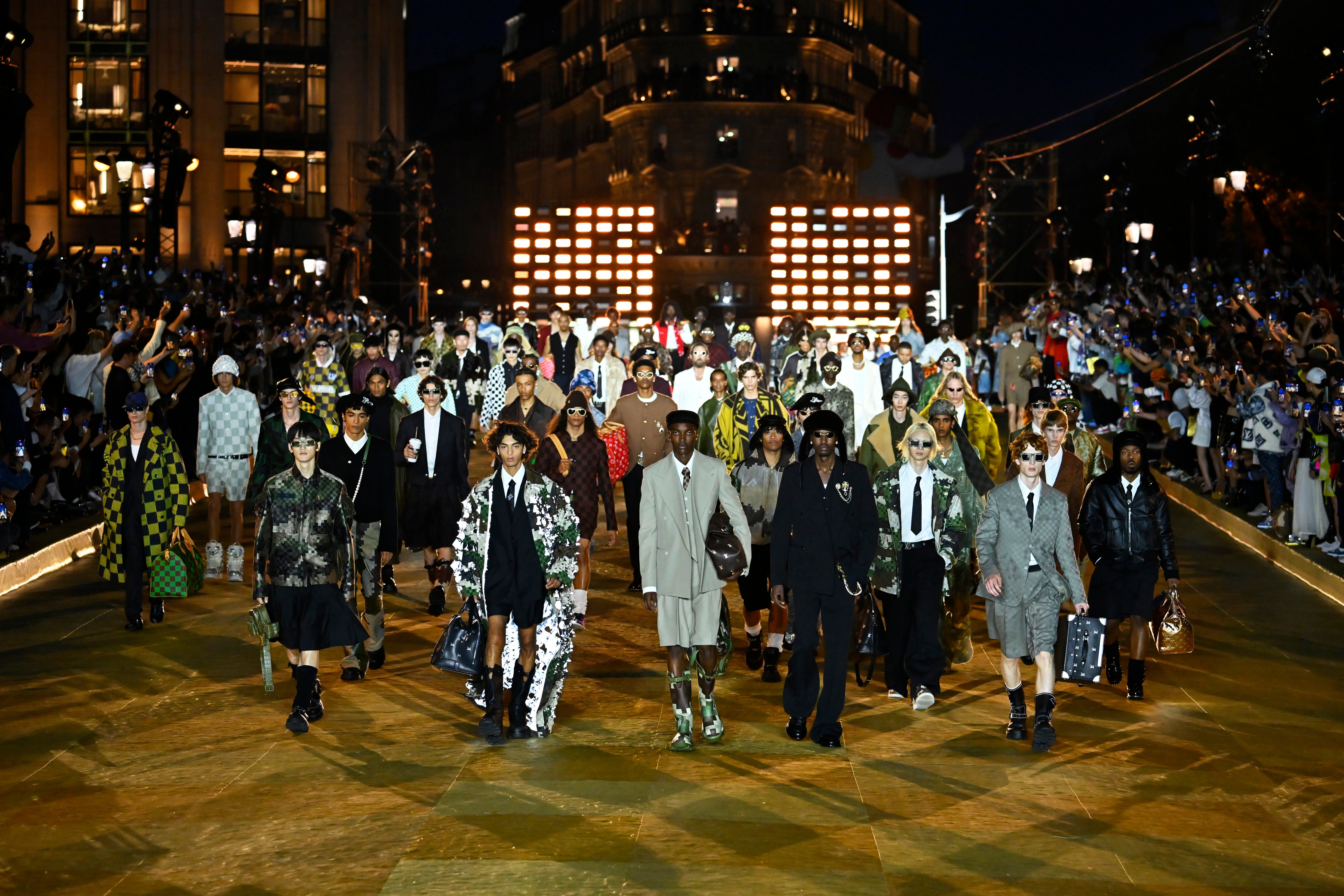 Die Pariser Männermodenschauen haben mit einer Show der Superlative begonnen. Für die erste Louis-Vuitton-Kollektion des US-amerikanischen Musikers Pharrell Williams verwandelte der 50-Jährige die älteste Brücke von Paris in einen riesigen goldenen Laufsteg mit Schachbrettmuster, für die imposante Location wurde fast ein gesamtes Viertel dichtgemacht.