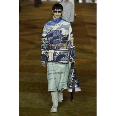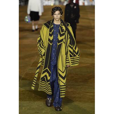 Den genderfluiden Einflüssen des verstorbenen Stardesigners Virgil Abloh folgend, zeigte Williams auch feminin geschnittene Blazer, lange Fellmäntel oder Wickelröcke. Begleitet wurde die Show von einem Orchester und einem Gospel-Chor, die den neuen Song von Pharell Willams - "Joy (Unspeakable)" - interpretierten, den er eine Woche zuvor herausgebracht hatte.