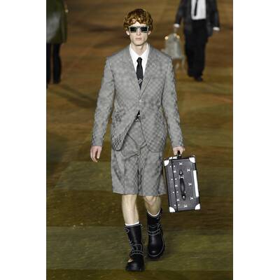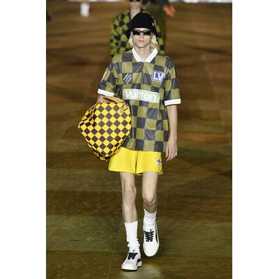 Zentrales Thema der Kollektion war das traditionelle Damier-Muster Louis Vuittons, das Williams als "Damoflage", eine Mischung aus Camouflage und Schachbrettmuster, neu interpretierte. Es erschien unter anderem auf Gummistiefeln, die mit Anzügen und kurzen Hosen getragen wurden, auf Lederjacken und Mänteln.