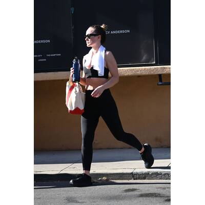 Olivia Wilde scheint Pilates-Fits zu sammeln wie andere Briefmarken. Unser persönlicher Lieblingslook? Navy Blue Leggings plus Navy Blue Sweatshirt. Simpel, monochrom – und trotzdem so chic, dass man sich direkt auch auf die Matte schwingen möchte.