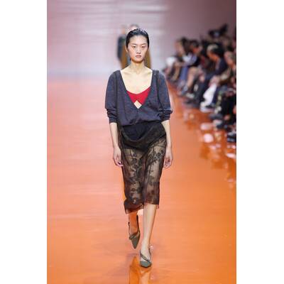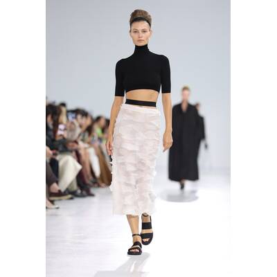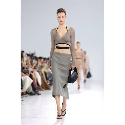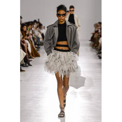 Bei Max Mara setzte man auf Understatement mit Star-Faktor. Schauspielerin Maude Apatow, Influencerin Kelly Piquet und Stilikone Olivia Palermo verfolgten die Show in der ersten Reihe. Die Kollektion präsentierte elegante Looks in Grau, Beige und Schwarz – edel, zurückhaltend, aber mit Raffinesse. Für Überraschungsmomente sorgten opulente Feder-Looks, die den minimalistischen Entwürfen einen extravaganten Twist verliehen.