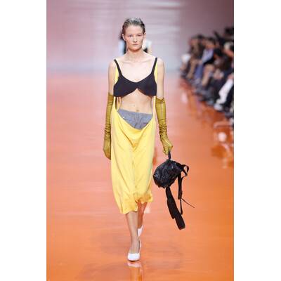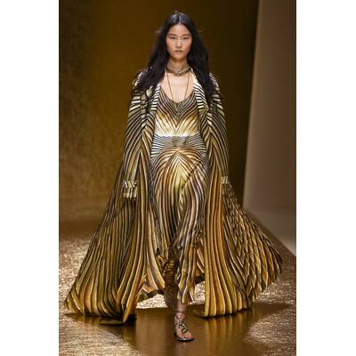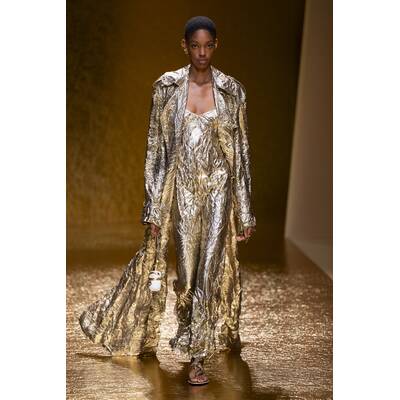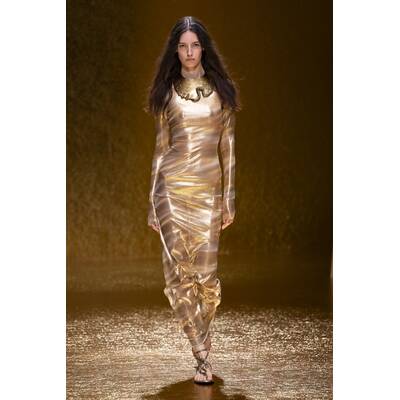 Cavalli lieferte pure Starpower: Madonnas Tochter Lourdes Leon, Rapperin Ice Spice, Influencerin Chiara Ferragni und völlig überraschend Natalia Bryant, Tochter der Basketball-Legende Kobe Bryant, zierten die Front Row. Passend dazu entführte die Kollektion ins Reich des Glamours: Gold, Metallics und fließende, schimmernde Silhouetten standen für Cavallis Markenzeichen. Die Looks auf dem Runway waren opulent, sinnlich und wie immer dramatisch.
