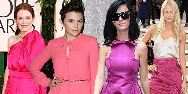 war Pink eine sehr begehrte Kleiderfarbe. Julianne Moore strahlte in einem One-Shoulder Kleid aus Seide in Pink. It-Girl