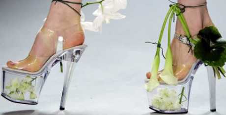Die märchenhaftesten Accessoires zeigten in Berlin "Scherer Gonzales". Highheels aus lebenden Blumen.
