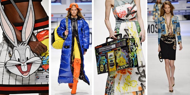 Seine neue Kollektion ist, wie schon die letzten drei, von der Popkultur inspiriert. In diesem Fall heißt das: Prinz von Bel Air trifft auf Bugs Bunny trifft auf Paddington trifft auf Salt N Peppa trifft auf die Prototypen der Hipster. Alles bunt, alles schrill alles begrenzt tragbar.