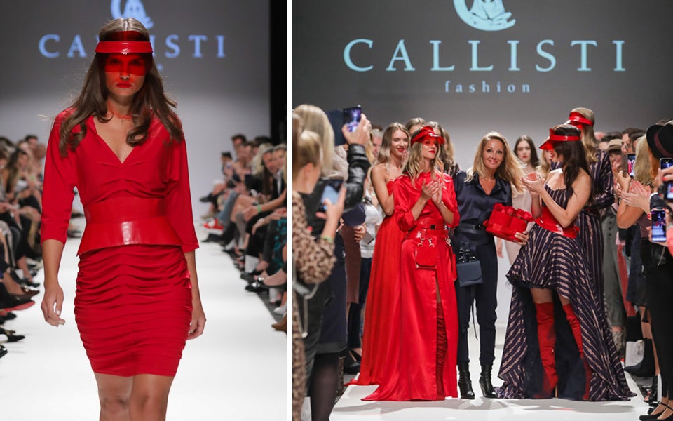 Das Highlight des zweiten Tages der MQ Vienna Fashion Week war zweifelsohne die Präsentation der neuen Callisti Kollektion. Sporty-Chic trag auf Signalfarben. Das Zusammenspiel von Oversize-Mänteln und Balloonjacken zu hochtaillierten Hosen, Bleistiftröcken und Etuikleidern kreierte eine sexy Silhouette. Jumpsuits, Racerback-Tops im Metallic-Streifenlook und der rote Visor, welchen die Models trugen, verstärkten den athletischen Charakter der Herbst/Winterkollektion 2019/20.
