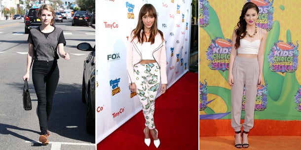 Für Damen, die von Natur aus eher einen flachen Bauch haben und sich mal etwas trauen wollen, empfiehlt sich gerade in heißen Sommermonaten auch die Kombination mit kurzen "Crop Tops". Der Nabel kann ein wenig hervorlugen, sollte aber im Gegensatz zum Bauchfrei-Trend nicht unbedingt komplett gezeigt werden. Ein dünner Streifen Haut, der zwischen Hosenbund und unterem Rand des Tops aufblitzt sieht sehr sexy aus und ist sogar vollkommen Red-Carpet tauglich.
