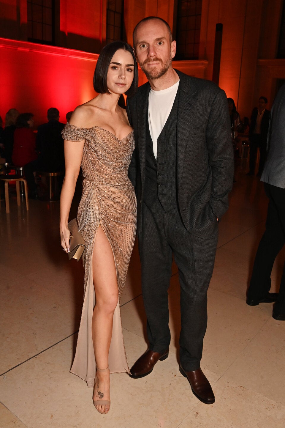 An ihrer Seite strahlte ihr Ehemann Charlie McDowell, der mit einem dunkelgrauen Anzug und einem lässigen weißen T-Shirt den perfekten Kontrast zu Lilys Look bot. Händchen haltend schlenderte das Paar verliebt über den roten Teppich.