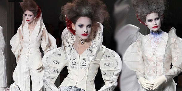 Die traumhaft verspielten Roben waren beinahe komplett in Weiß gehalten und ließen, gepaart mit Styling und Make-Up der Models, das Publikum den Atem anhalten. "Es war eine Herausforderung, alles in Weiß zu machen," verriet Browne. "Vor allem, wenn man vierzig verschiedene Looks mit unterschiedlichen Stoffen kreiert," erzählte der Designer im Backstage-Bereich. Um den Charakter der Outfits besonders hervorzuheben, wählte er für die Vorführung einen Raum, der ebenfalls völlig in weiß gehalten war und den Zuschauern das Gefühl einer psychiatrischen Anstalt vermittelte.