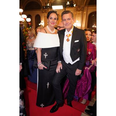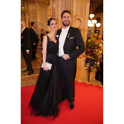 Rot ist die Farbe der Leidenschaft – und das zeigte sich auch auf dem Opernball! Mehrere Gäste setzten auf auffällige Rottöne, die sich selbstbewusst von den klassischen Farben abhoben. Model Larissa Marold strahlte in einer leuchtend roten Robe im Stufenschnitt. Auch Model Franziska Knuppe entschied sich für ein kräftiges Rot und sorgte mit Schleppe und auffälligen Ärmeln für einen echten Hingucker.