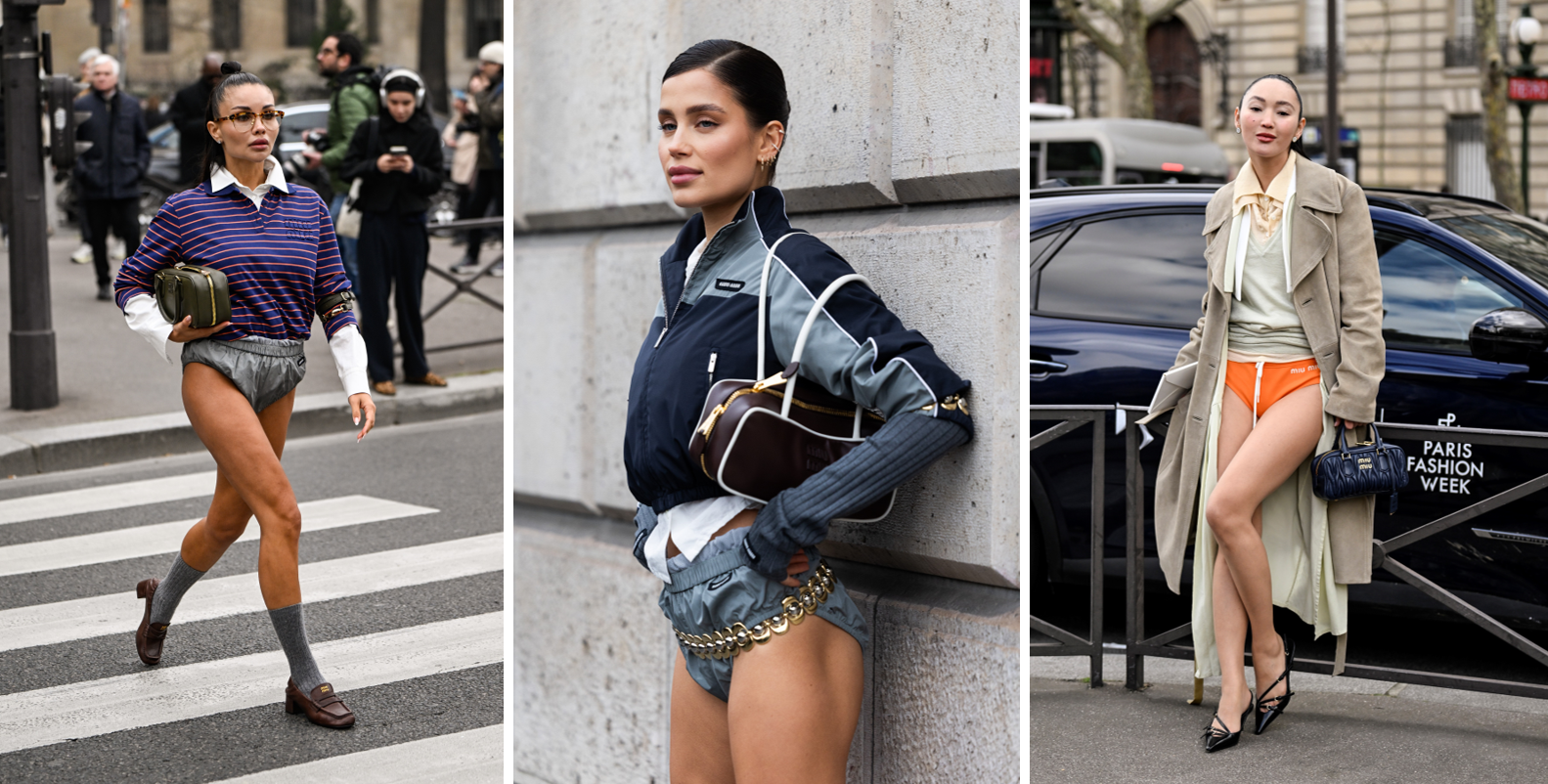 Auf der Pariser Fashion Week präsentierten Influencerinnen etwa die ultrakurzen Modelle des Luxuslabels Miu Miu – so knapp, dass sie eher an Unterwäsche erinnern als an straßentaugliche Kleidung. Aber auch auf dem Laufsteg selbst machen sie die Runde: Neben Miu Miu zeigte auch die französische Brand Jacquemus eine moderne Interpretation der „Windelhose“.