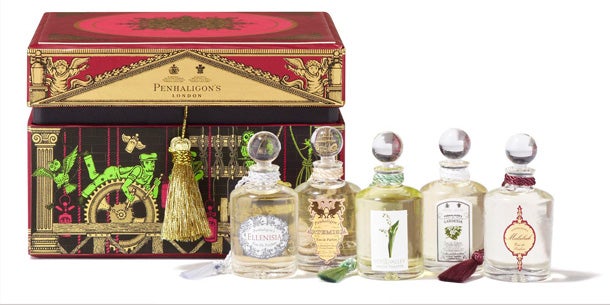 Kurz vor Weihnachten präsentiert die britische Traditionsmarke eine Kreation der besonderen Art – die Ladies Fragance Collection. Fünf Miniaturausgaben der Penhaligon’s Parfüms erwarten Sie in einer liebevollen Geschenkbox, die in Anlehnung an die farbenfrohe Welt des Londoner Theaters kreiert wurde. Die verschieden Düfte: Ellenisia, Lily of the Valley, Artemisia, Gardenia und Malabah; sind ideal für Neugierige, Einsteigerinnen oder Unentschlossene, die nach hochwertigen Düften mit dem gewissen Etwas suchen.