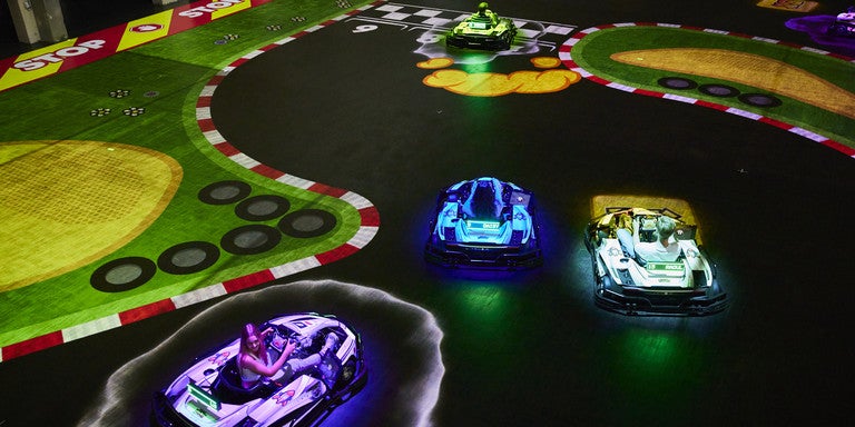 Durch spezielle Funktionen an dem Lenkrad und Monitor können die Spieler den Mitstreitern das Leben schwer machen und auf dem Rennparcours so richtig Gas geben. Dabei tauchen alle Racer in eine erweiterte Realität ein und erleben verschiedene Strecken und Spiele, es verschmelzen die reale und die virtuelle Welt – ganz ohne VR-Brille. Der geschickte Einsatz interaktiver und überraschender Elemente wie Raketen, Ölfässer und Turbos sorgen für Abwechslung und Überraschung auf der Strecke.