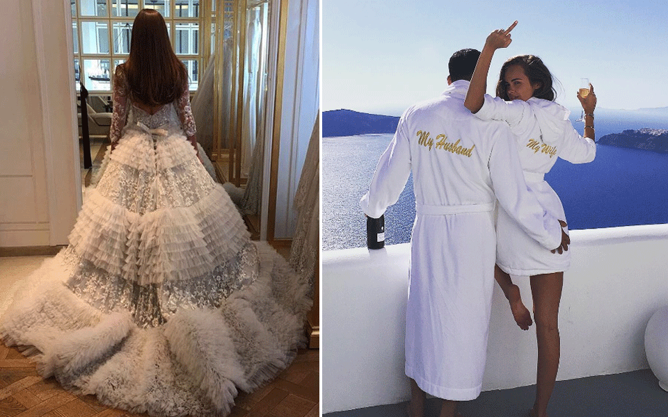 Die Zeremonie wird in die Geschichte der kleinen Mittelmeerinsel eingehen. Kolportierte 1 Million Euro ließ sich das Paar die Open-Air-Hochzeit der Sonderklasse kosten. Allein das Couture-Brautkleid hat ein kleines Vermögen verschlungen. Die Maßanfertigung von Zuhair Murad war ein Traum aus Spitze, Federn und Rüschen.