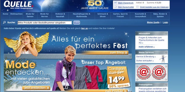 Der Abverkauf beim insolventen österreichischen Versandhändler Quelle ist heute gestartet, aber bereits um 9 Uhr morgens war der Ansturm so groß, dass die Homepage zusammengebrochen ist. Mit knappen Worten wird der Kunde gebeten, es später wieder zu versuchen.