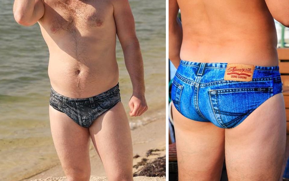 Wie jedes Jahr rittern Bademodenhersteller um den schrägsten Strand-Trend des Jahres. Dieses Jahr dürfte der Preis für das hässlichste Pool-Outfit wohl an den Hersteller "Shinesty" gehen. Das amerikanische Label hat Jeans mit Badehosen ("Speedos" auf English) gekreuzt und damit den Mode-Vogel abgeschossen. Die hautengen Badeslips sehen aus wie ultrakurzte Jeansshorts, die etwas zu viel Pobacke offenbaren. Die Denim-Beachwear gibt es auch für Damen.