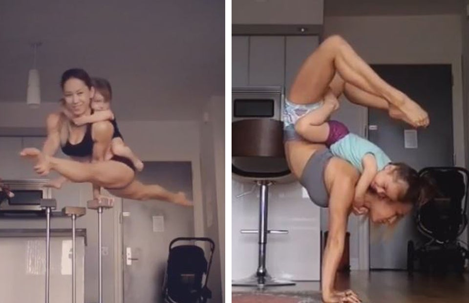 In vielen Instagram-Videos zeigt sie Verrenkungen, Verbiegungen und unfassbare Balance-Akte, die uns Normalsterbliche schon absolut die Luft anhalten lässt. Wenn jedoch ihre kleine Tochter noch ins Spiel kommt, dann scheint es sogar so, als würde sie sich der Erdanziehungskraft widersetzten.