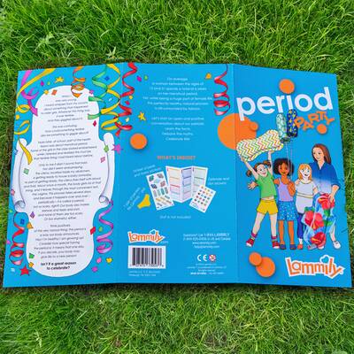 „Das „Period Party“ Set kommt mit einem kleinen Heft, dass die weibliche Menstruation erklärt, Unterwäsche, 18 bunten Binden und einem Kalender, damit Lammilys Besitzer auch den Zyklus nachverfolgen kann.