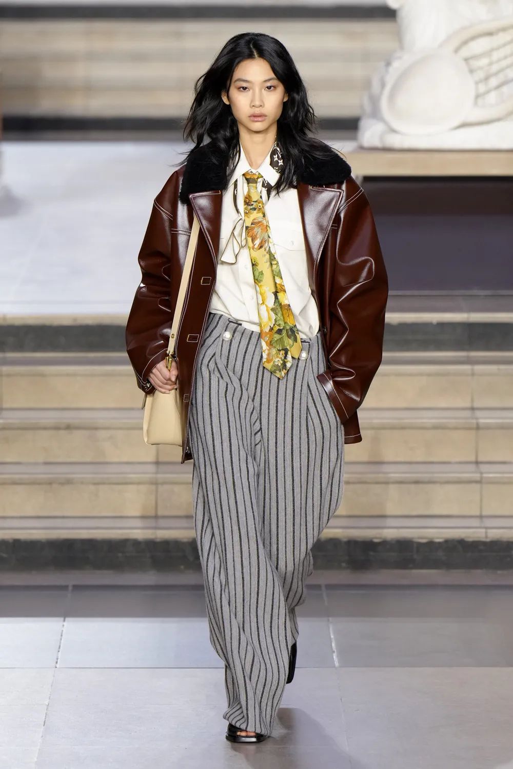 Mit einem kontrastreichen Mix aus Mustern und Materialien, weiten Silhouetten und breiten Schultern, zeichnet Kreativchef Nicolas Ghesquière ein starkes und zugleich entspanntes Frauenbild. Neben floralen Details und leichten Stoffen, sorgen knallige Farbtupfer für einen positiven Blick in die modische Zukunft.