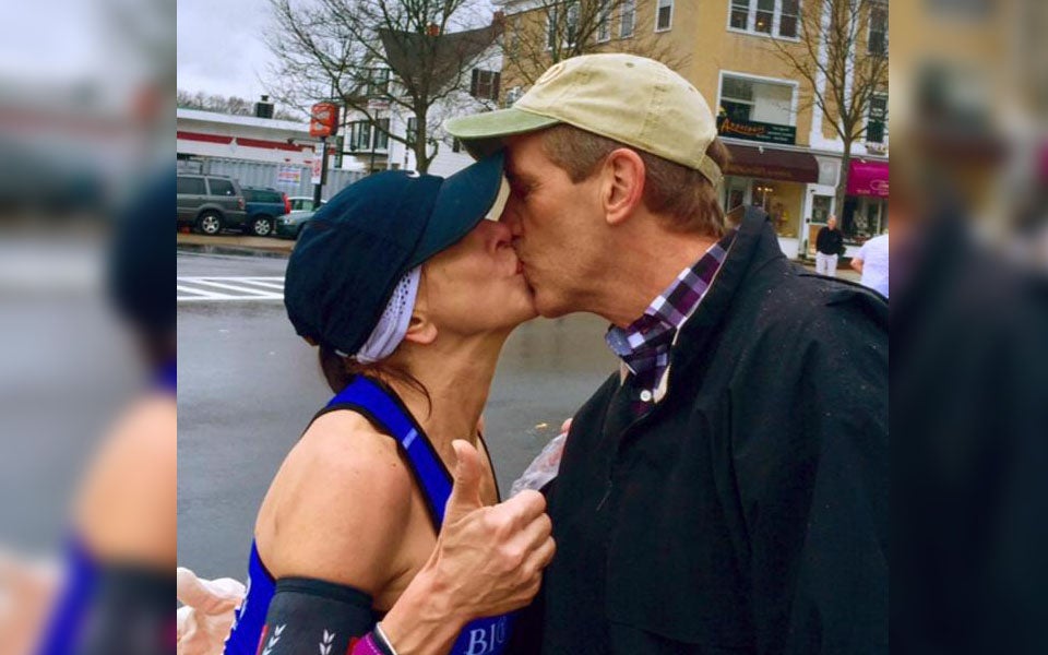 Barbara Tatge aus Tennessee lief mit 55 Jahren den ersten Marathon, und dafür dachte sich ihre Tochter Paige etwas Besonderes aus. Sie forderte ihre Mutter heraus, einen gutaussehenden Fremden Mann unter den Zuschauern des Boston Marathon zu machen, ihn zu küssen und das ganze fotografieren zu lassen.