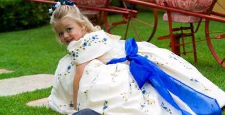 Mädchen: In Prinzessinnen-Kleidern der Farbe weiß, rosa oderblau mit Stickereien oder Schleifen glänzen die kleinen Blumenmädchen. Superdazu sind feine Handschuhe.