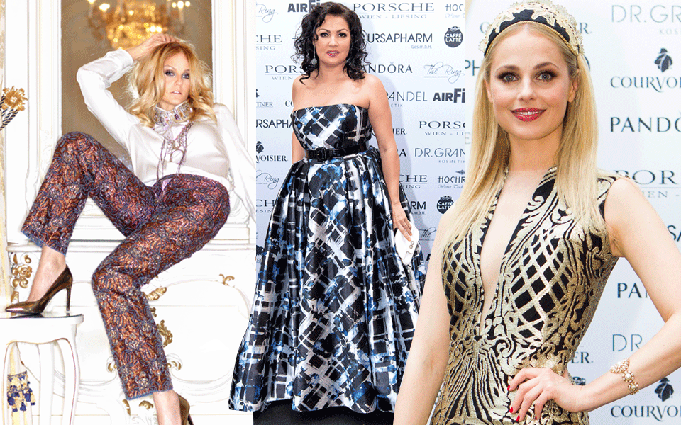 Gekonnt mondän setzt sich die Opern-Diva mit extravaganten Couture-Kleidern – wie von Escada oder Vitjaz – auf der Modebühne in Szene.