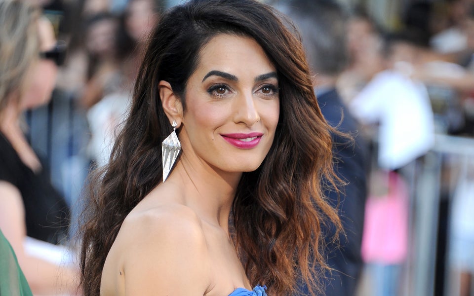 Die Anwältin und Neo-Mama von Zwillingen kam in einem schulterfreien Kleid mit Schleppe. Rote Lippen, gelockte Wallemähne und XXL-Ohrhänger und schon war der erfrischende Abendlook fertig. Mama Baria Alamuddin kam in einem grünen Abendkleid und posierte mit dem glücklichen Paar.
