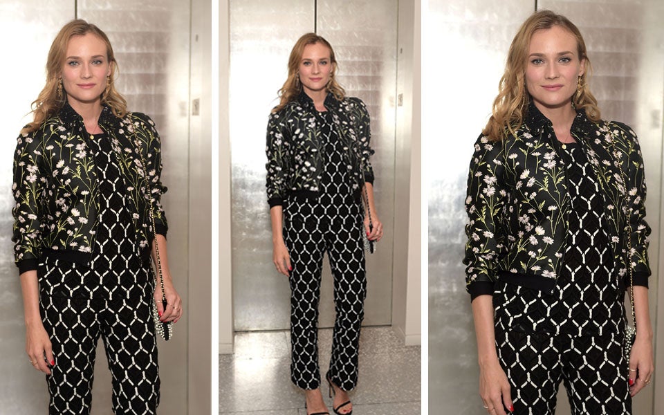 Nichts kann stilistisch so schnell in die Hose gehen wie ein Mustermix. Wenn es aber eine kann, dann ist es die deutsche Schauspielerin und Über-Fashionista Diane Kruger. Das It-Girl zeigt immer wieder gewagte Outfits, die sie allerdings so perfekt umsetzt, dass sie immer wieder auf den Best-Dressed-Listen landet. Dazu gehört auch dieser Look, den sie jetzt zu einem privaten Cocktail-Event des Modehauses Barney’s in New York trug. Sie trug Jumpsuit mit Maschendrahtzaun-Muster zu einer College-Jacke mit Blütenstickerei. Was wild klingt, sieht bei Diane einfach nur fantastisch aus. Dafür gibt es mehrere Gründe!