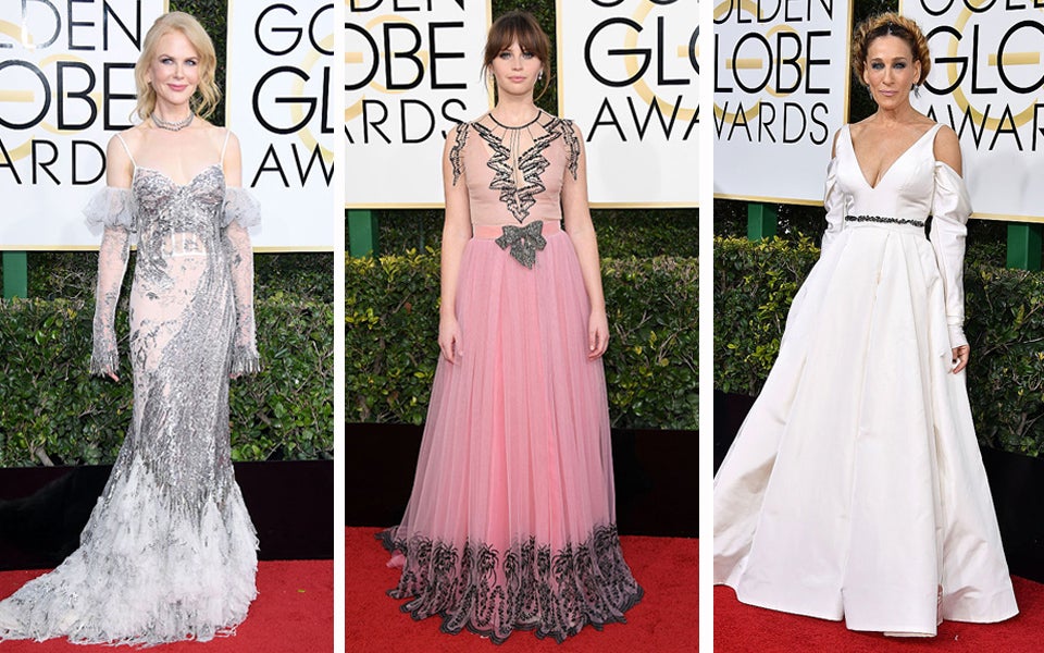 Sie sind der Vorbote der wohl wichtigsten Award-Show in Hollywood. Bei den Golden Globes lässt sich schon erahnen, wer auch bei den Oscars ein heißer Anwärter auf eine Trophäe sein wird. Wir hoffen aber nicht, dass auch die misslungenen Looks so mancher Stars ein Vorgeschmack auf die Oscars sind, denn bei den Golden Globes gab es so einige Outfits, die man maximal unter Fashion-Fauxpas einordnen kann. Die sonst so stilsichere Sarah Jessica Parker zeigte sich beispielsweise in einer ausladenden Robe von Vera Wang, während „Rogue One“-Star Felicity Jones in ihrem pinken Chiffonkleid mit zu vielen überflüssigen Verzierungen auch nicht wirklich punkten konnte. Wir haben die Mode-Fehlgriffe des roten Teppichs und der After-Partys für Sie zusammengetragen.