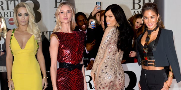 Jessie J wollte mal in einen bestickten, nude-farbenen Meerjungfrauen-Overall schlüpfen und trug dazu weiß-violetten Lippenstift auf. Gewöhnlich war bei den diesjährigen Brit Awrads jedenfalls keines der Outfits. Positiv aus der Menge stachen Model Rosie Huntignton-Whiteley in einem roten Pailettenkleid, sowie Nicole Scherzinger in einem schwarzen Hosenazug und einem Top im Bondage-Stil!
