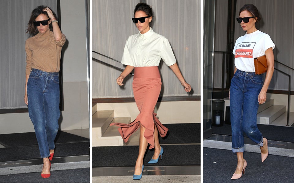 Früher war sie berühmt für ihr 'kleines Schwarzes', Heels und dunkle Shades. Doch Victoria Beckham scheint ihren Stil alle paar Jahre über den Haufen zu werfen. Ihr neuer Look umfasst die ganze Bandbreite der Farbpalette - außer Schwarz! Von Pastelltönen über Ocker bis hin zu Signalfarben bekennt die 43-Jährige Mut zu Colour Blocking. Mittlerweile kann man die Farbe Schwarz lange in ihrer Garderobe suchen, dafür trägt sie jetzt mit Vorliebe Denim und simple T-Shirts. Not so posh, aber cool! Hier ihre aktuellen Looks aus New York: