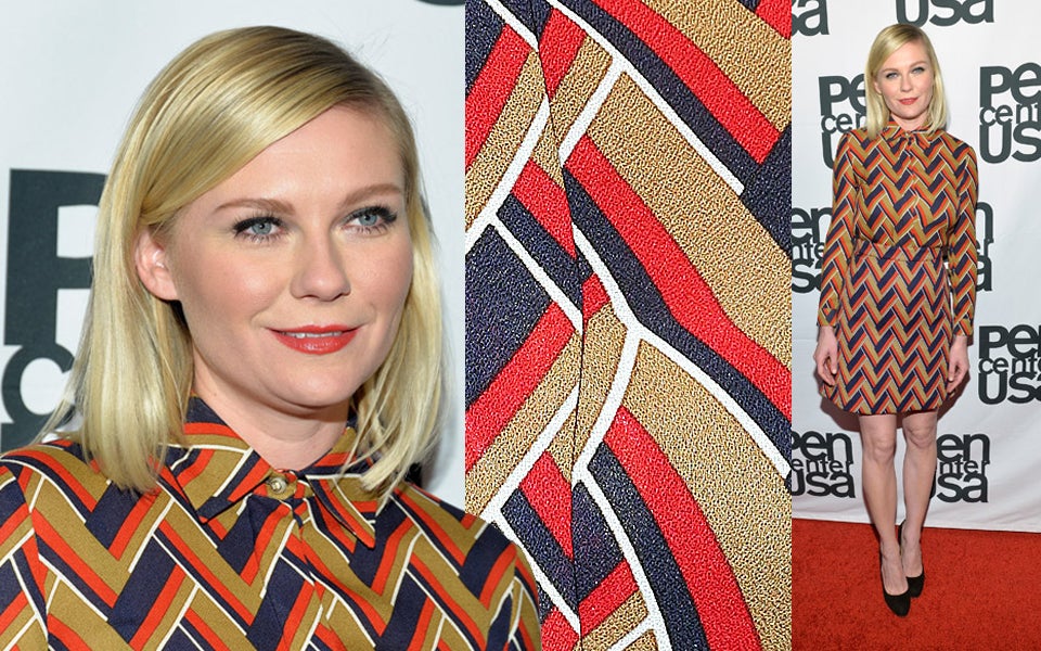 Sixties-Look der schlimmsten Art: Kirsten Dunsts Op-Art-Kleid veursacht Schwindel.