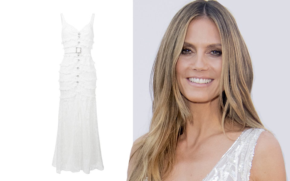 Im Zuge der Wedding-Feierlichkeiten auf Capri schlüpfte Heidi in mehrere Träume in Weiß. So trug sie bei der Pre-Party am Freitag ein Spitzenkleid von Alessandra Rich. Das Kleid aus der aktuellen Ready-to-Wear-Kollektion der Designerin ist jetzt sogar im Sale! Via Farfetch gibt es den Look um 3358 Euro statt um 4197 Euro. Auf Mytheresa gab es das Kleid noch günstiger zu kaufen (um 1275 Euro), doch leider ist das schöne Stück dort bereits ausverkauft.
