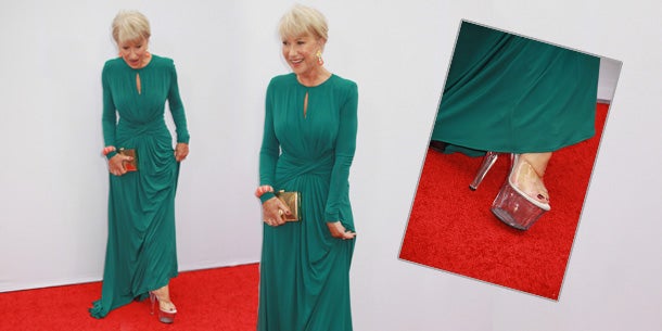 Bei der Premiere ihres neuen Filmes "Red 2" in Los Angeles zeigte sich die Aktrice in einem smaragdgrünen Maxikleid mit dezentem Schlüsselloch-Ausschnitt und dazu goldener Clutch. Das Kleid schmeichelte ihrer Figur und streckte sie optisch. Doch um größer auszusehen half die Schauspielerin zusätzlich mit einem "Styling-Trick" der besonderen Art nach. Unter dem langen Kleid schienen transparente Plastik-Heels, wie man sie sonst nur an Tänzerinnen in Nachtclubs sieht, hervor. Ganze 15cm hohe Plateaus! Alles andere als ladylike und ein Widerspruch in sich.
